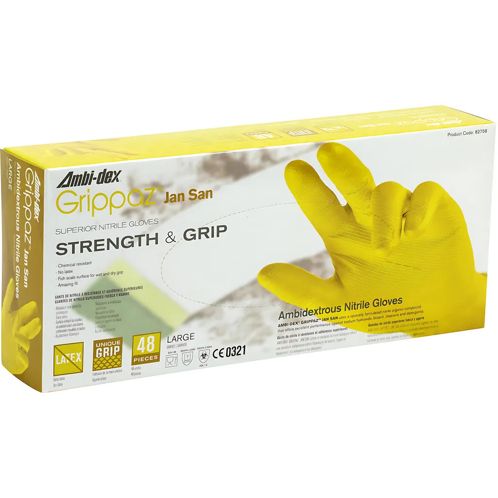 Jan San- 6 mil Yellow Nitrile- Powder Free- 12"L- Silicone Free PATENTED FISH SCALE GRIP- FDA 21 CFR Compliant- 48 Gloves/Box